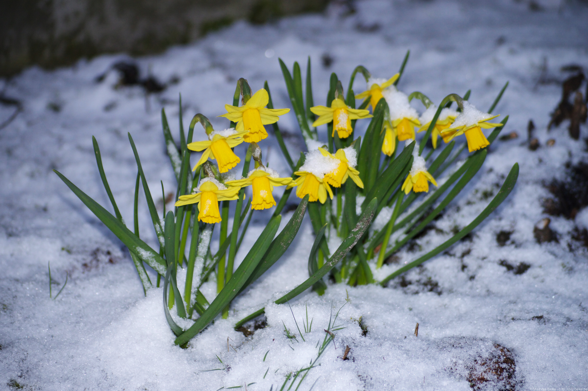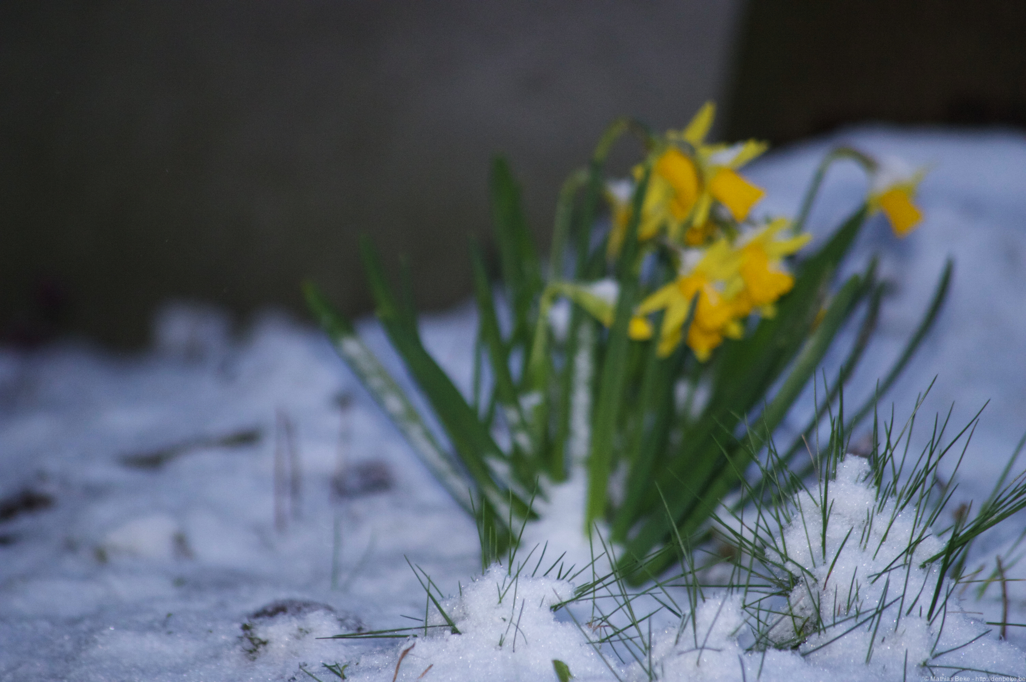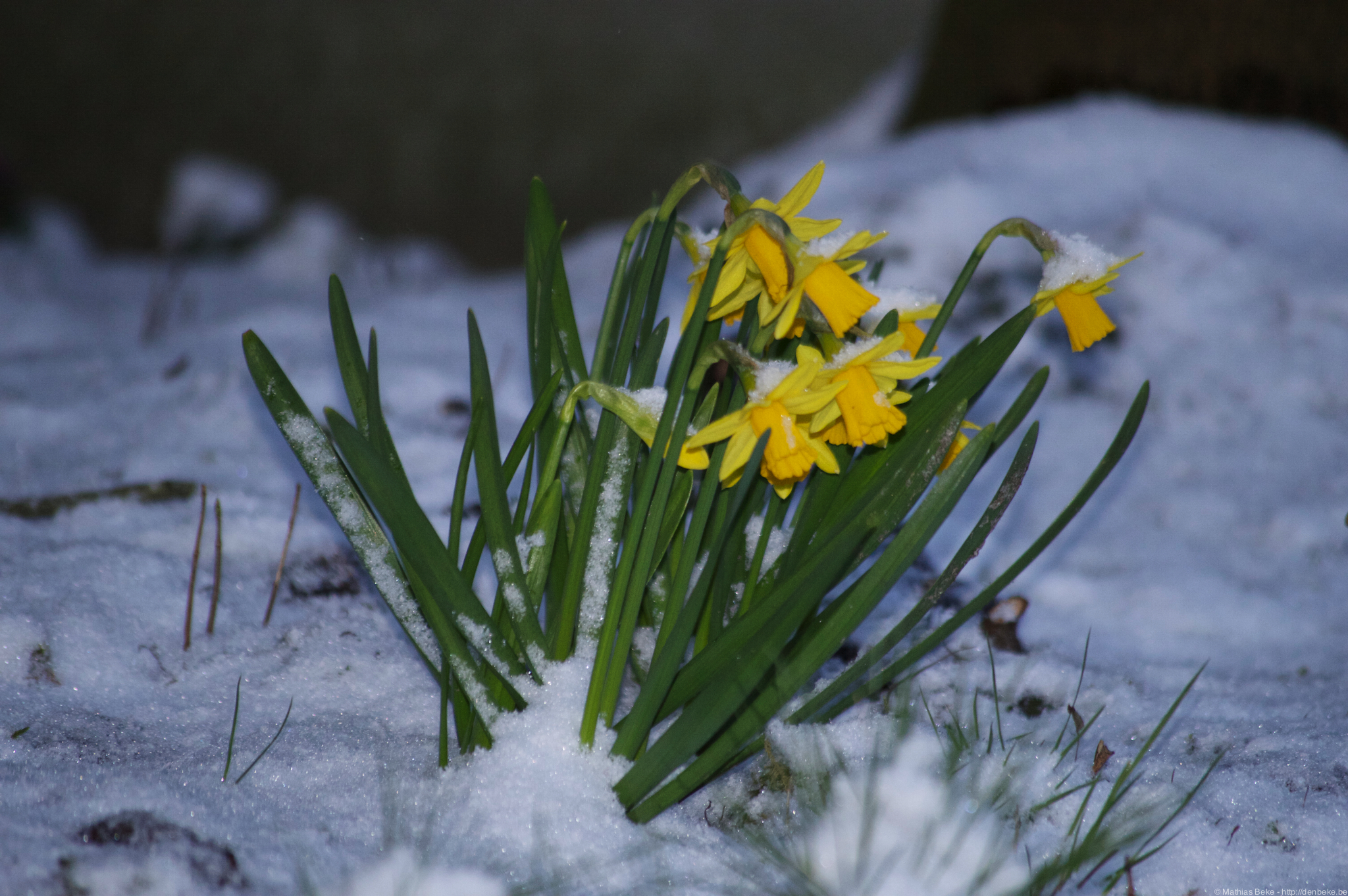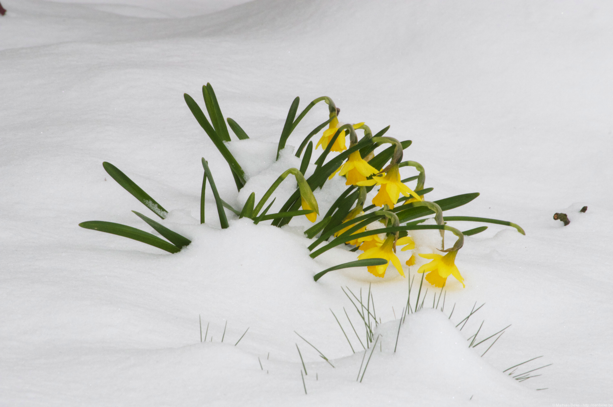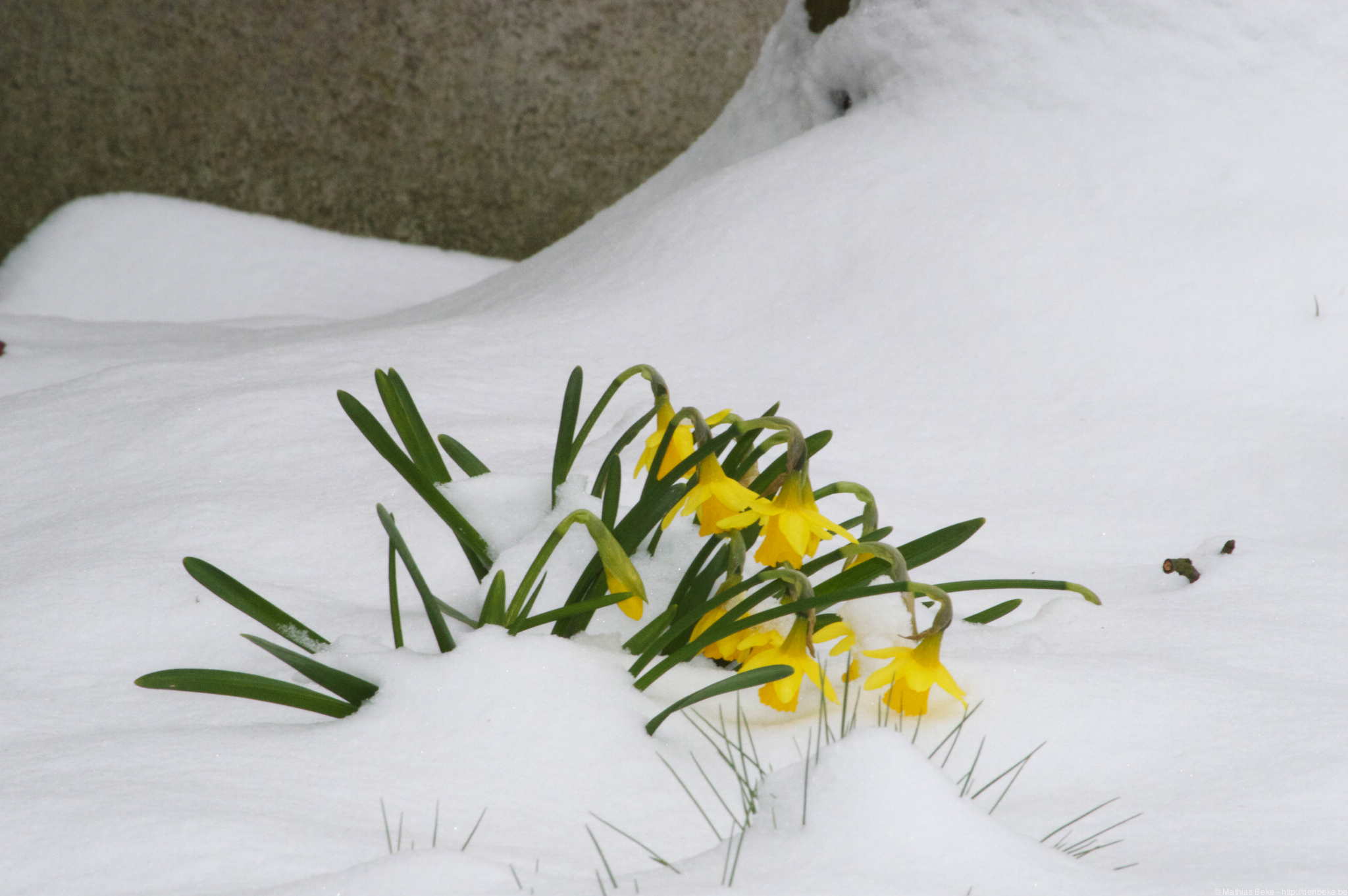 De paasbloemen staan hier dus niet in het groene gras, maar op een tapijt van sneeuw!