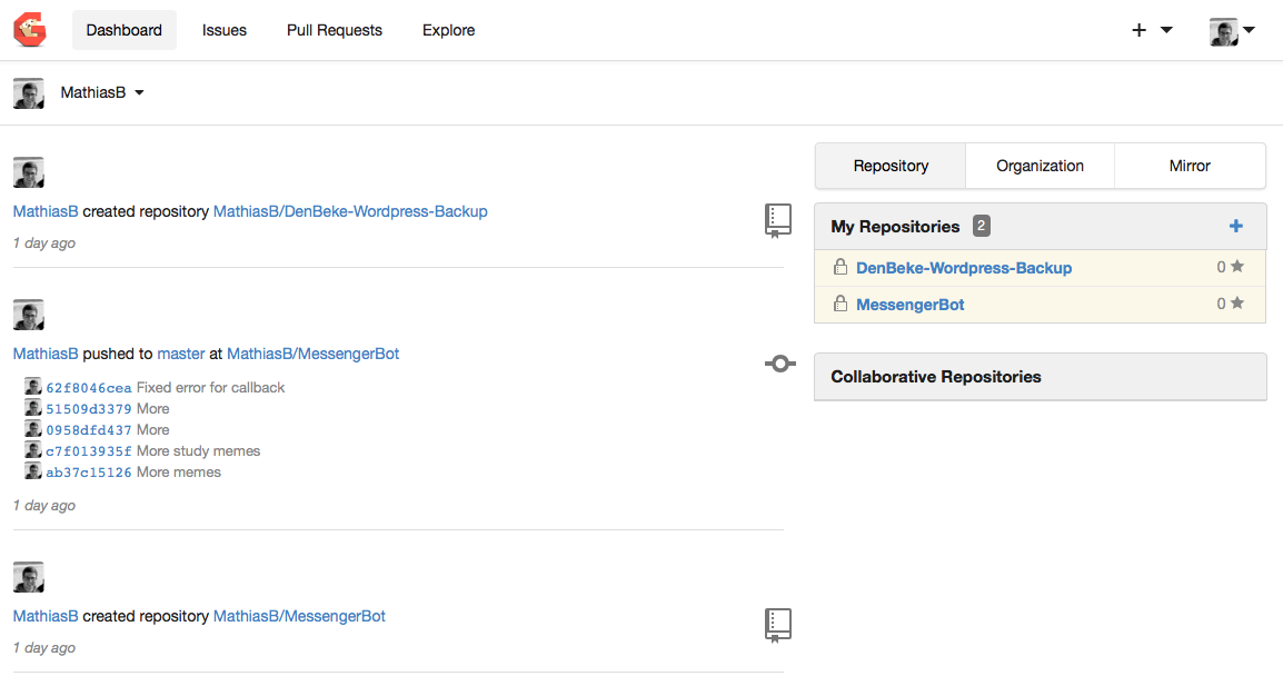 To host my git repositories I run Gogs on my Mac. More info in this blogpost: Running Gogs (Go Git Service) as a service on macOS X server.