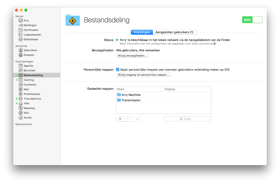 Creating a shared volume is very easy. Go to File sharing in the navigation and do it yourself! ? It’s very intuitive, like all Apple products, so I won’t explain it here…