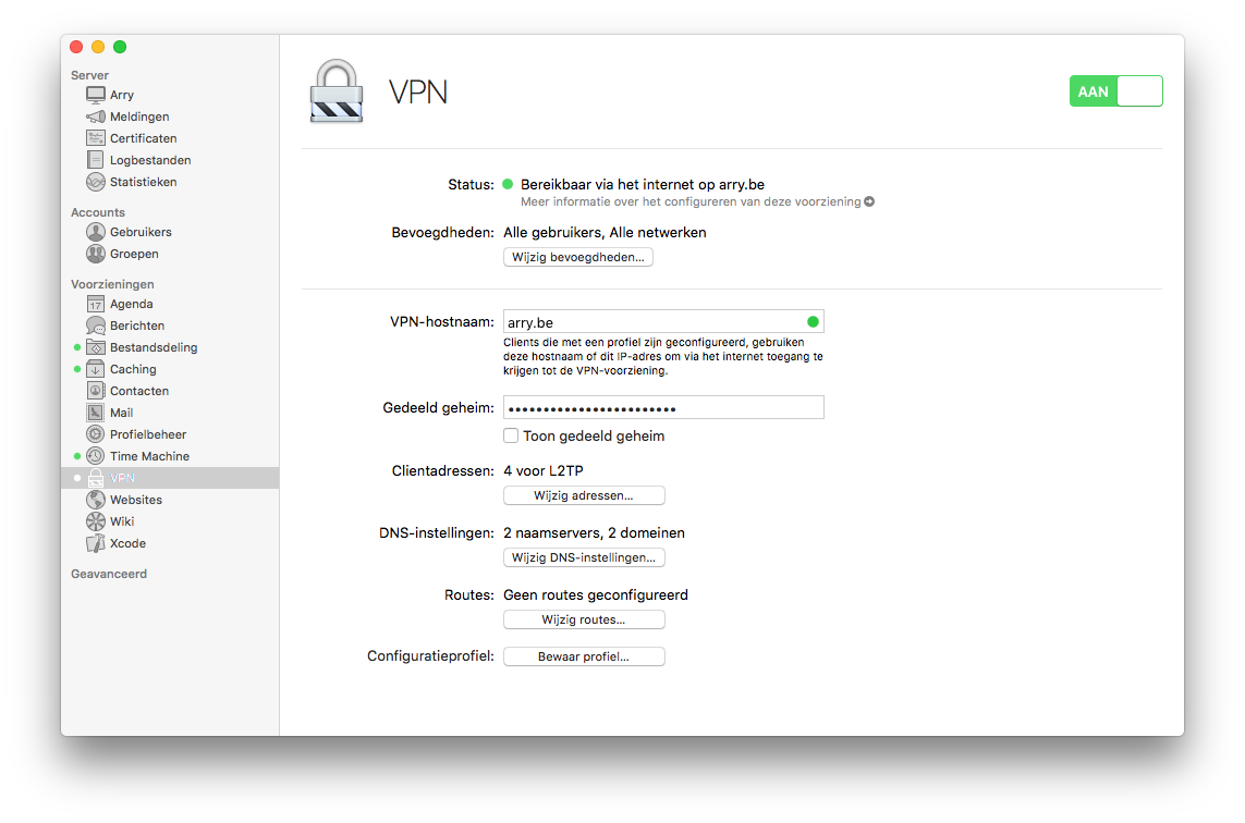 If you’ve configured everything, you can start the VPN server and connect to it with your Mac or iPhone. The VPN type you need to choose is L2TP.