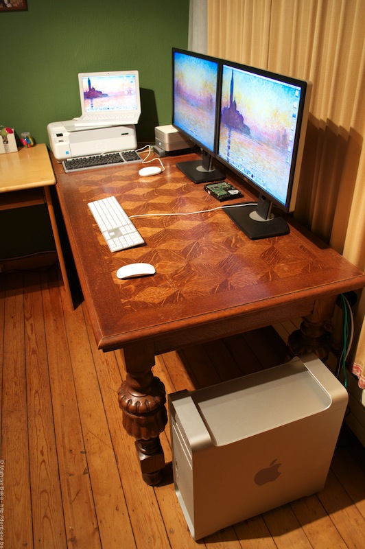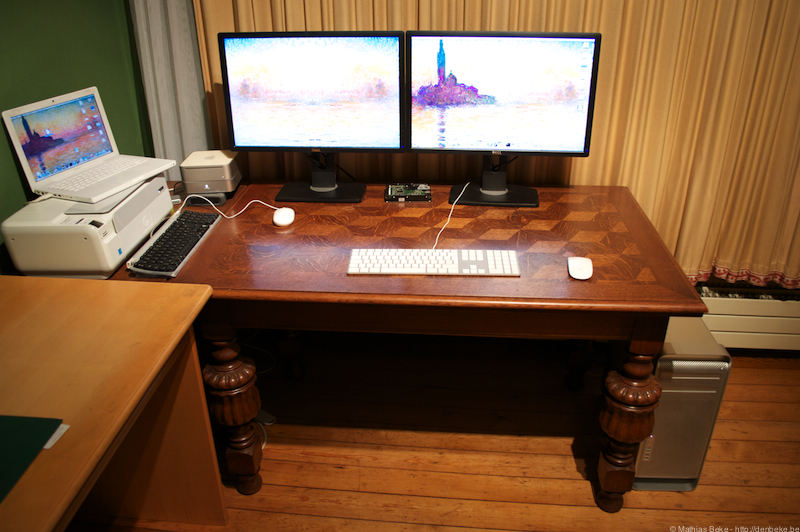 Thuis gebruik ik voornamelijk mijn Mac Pro uit 2008, met in het totaal 8 cores aan 2,8GHz. Daarnaast sleur ik mijn witte MacBook uit 2009 overal mee naartoe. De Mac Mini wordt wat gebruikt als server, maar dit niet zo vaak…