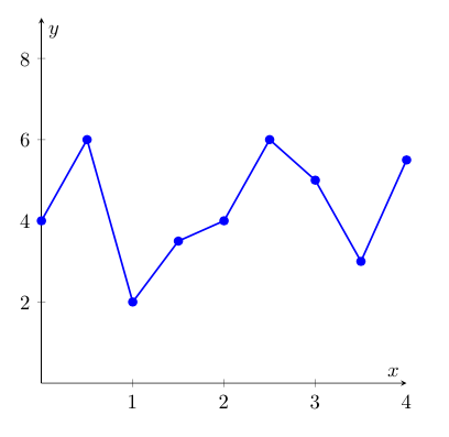 In one of my previous posts I wrote about plotting LaTeX function graphs using pgfplots. But sometimes you don’t have a function rule, but just a set of data points.