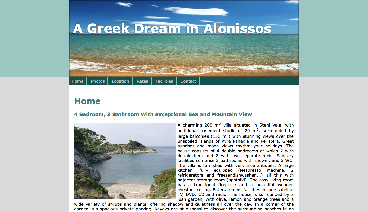 Het resultaat is een online brochure voor de verhuur van een vakantie woning in Alonissos, Griekenland.